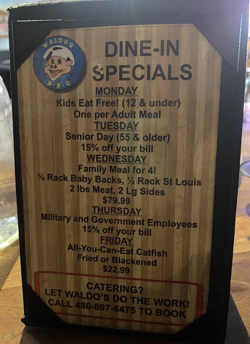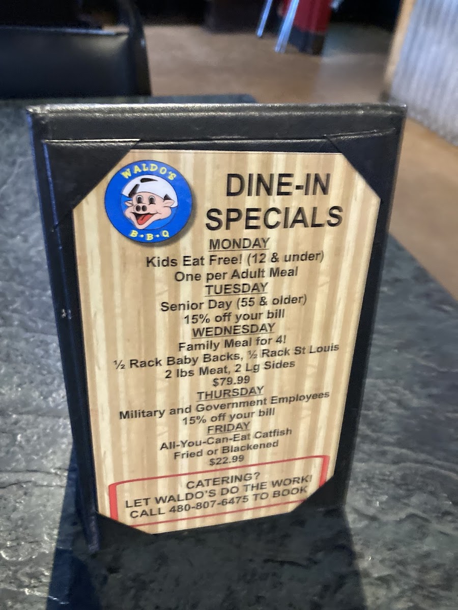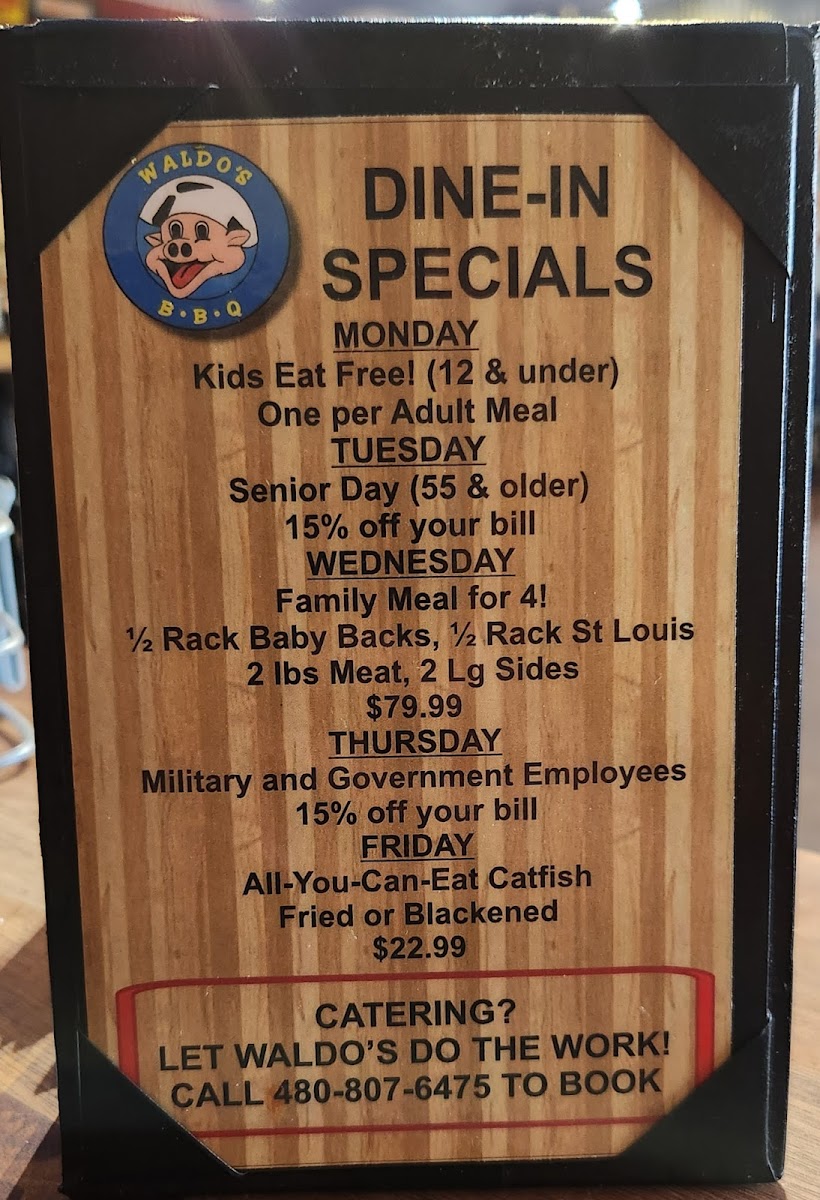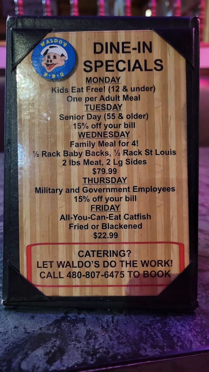 Welcome to Waldo's BBQ, a beloved barbecue gem located at 4500 E Main St, Mesa, AZ. Renowned for its mouthwatering selections, Waldo's offers a variety of meat by the pound, including sliced brisket and pulled pork, each served with a signature BBQ sauce that seems to have a dedicated fanbase. The homemade side dishes perfectly complement the barbecue, featuring standout options like hatch chile mac and cheese and fried corn on the cob, both available for just $4.00.